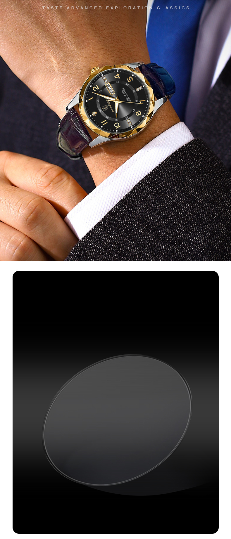 Trendy waterproof watch. Men's fully automatic mechanical watch with dual calendars, quartz movement and luminous function, a wristwatch